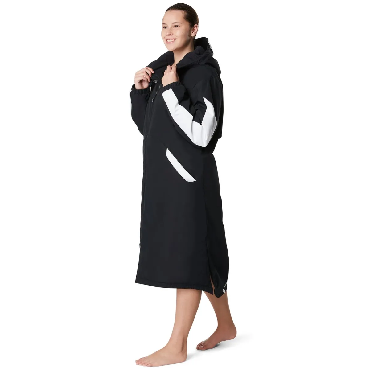 Look no further than this colorblock parka to keep you warm on cold practice days or in between swim events. Cozy fleece lining and a water-resistant shell make this lightweight, packable style the only outerwear you need.