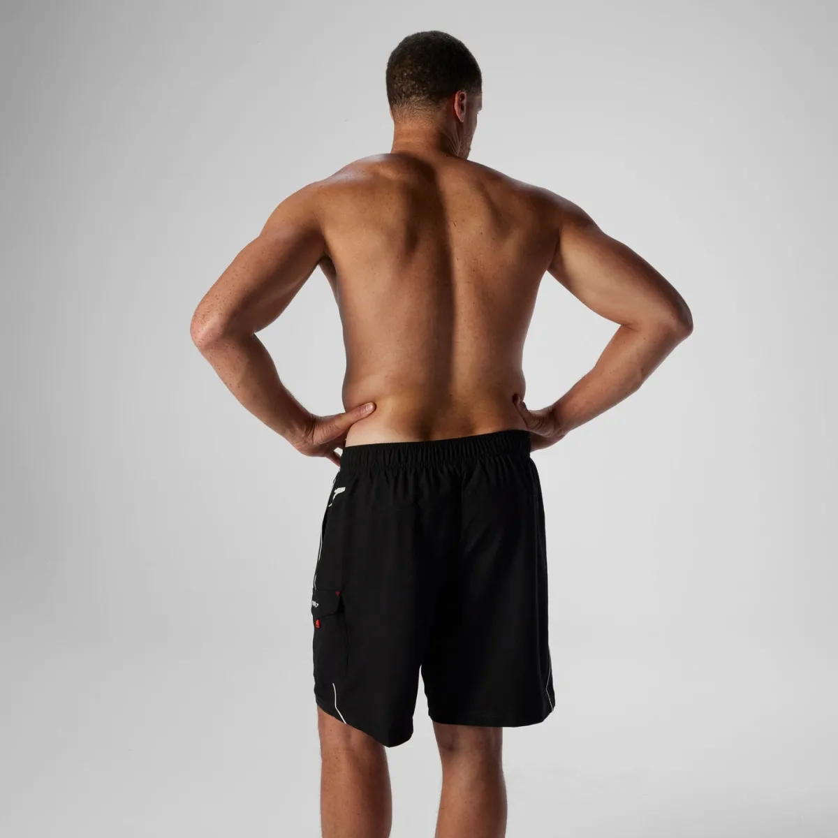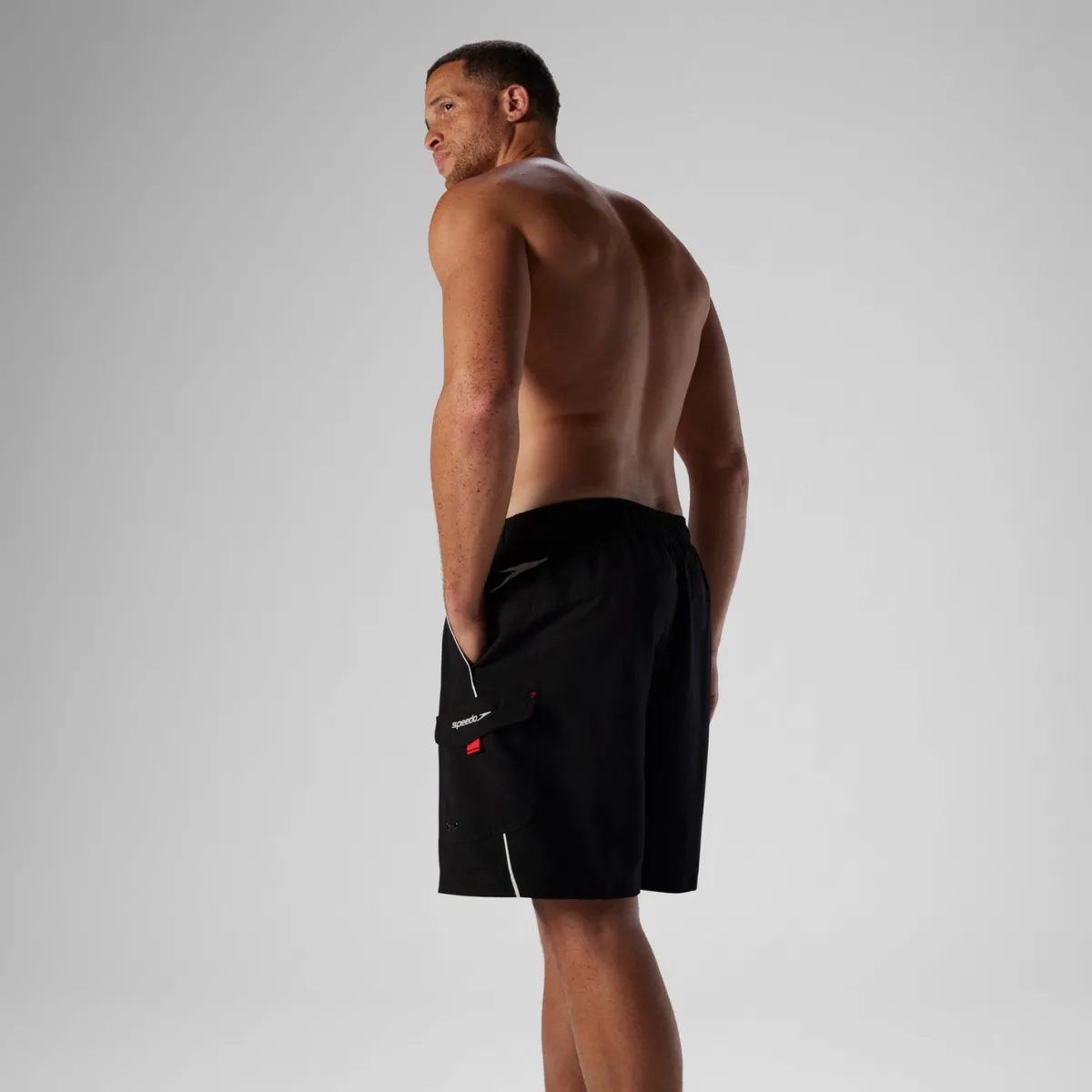 - Cargo pocket features Velcro closure, water drainage hole, and logo