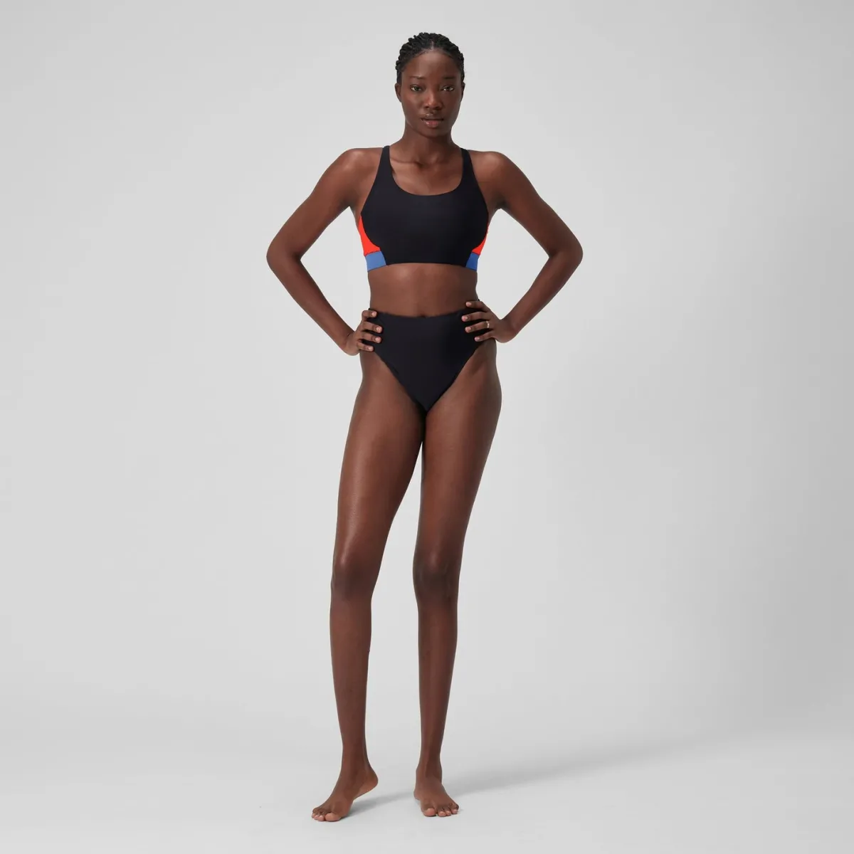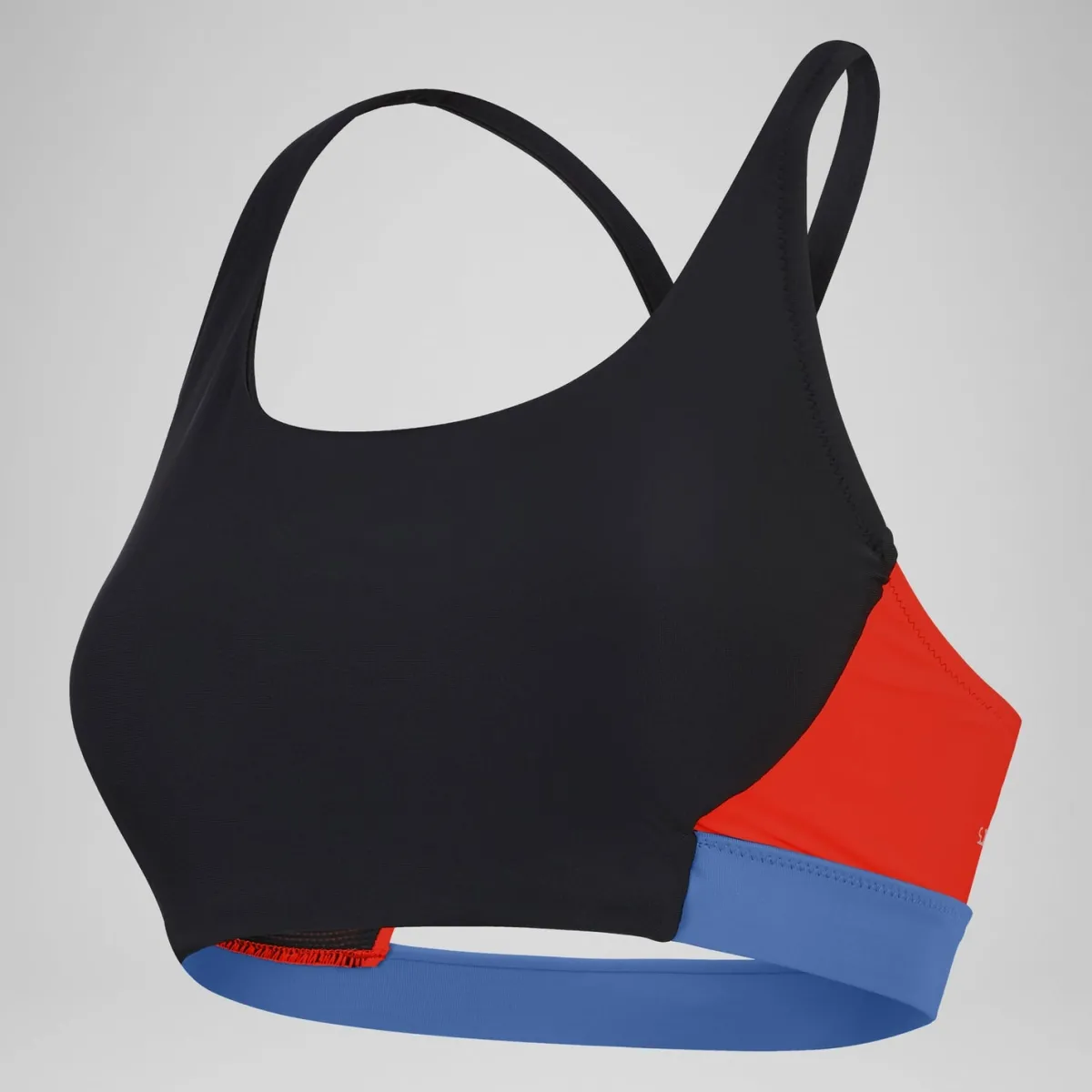 Mix and match your style wearing our sporty new Bikini Top. Bring a pop of colour-block to the pool and beach wearing this stylish bikini top with contrasting colours and a sporty racerback design. The shelf bra with removable pads ensures you feel comfy and secure, while the suncream-resistant fabric makes it a holiday must-have. Regular workouts are no match for our new ultra-chlorine-resistant fabric. It includes XLANCE® technology with two-way stretch for a long-lasting performance fit. Made in part from recycled plastic bottles the Repreve® Polyester yarn in this fabric is made from 100% post-consumer waste.